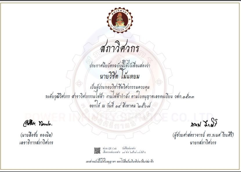 ขึ้นทะเบียนให้นายวิชิต โม้แหยม เป็นบุคคลผู้ให้บริการด้านความปลอดภัย อาชีวอนามัย และสภาพแวดล้อมในการทำงาน ตามกฎกระทรวงกำหนดมาตรฐานในการบริหาร จัดการ และดำเนินการด้านความปลอดภัย เกี่ยวกับไฟฟ้า พ.ศ. 2558 ในการเป็นผู้ให้บริการตรวจสอบและรับรองระบบไฟฟ้าและบริภัณฑ์ไฟฟ้า ทั้งนี้สามารถดำเนินการได้เฉพาะงานประเภทและขนาดตามกฎหมายว่าด้วยวิศวกร ประกอบกับกฎกระทรวงการขึ้นทะเบียนและการอนุญาติให้บริการเพื่อส่งเสริมความปลอดภัย แห่งพระราชบัญญัติความปลอดภัย อาชีวอนามัย และสภาพแวดล้อมในการทำงาน พ.ศ. 2554 ให้ไว้ ณ วันที่ 11 เมษายน พ.ศ. 2565